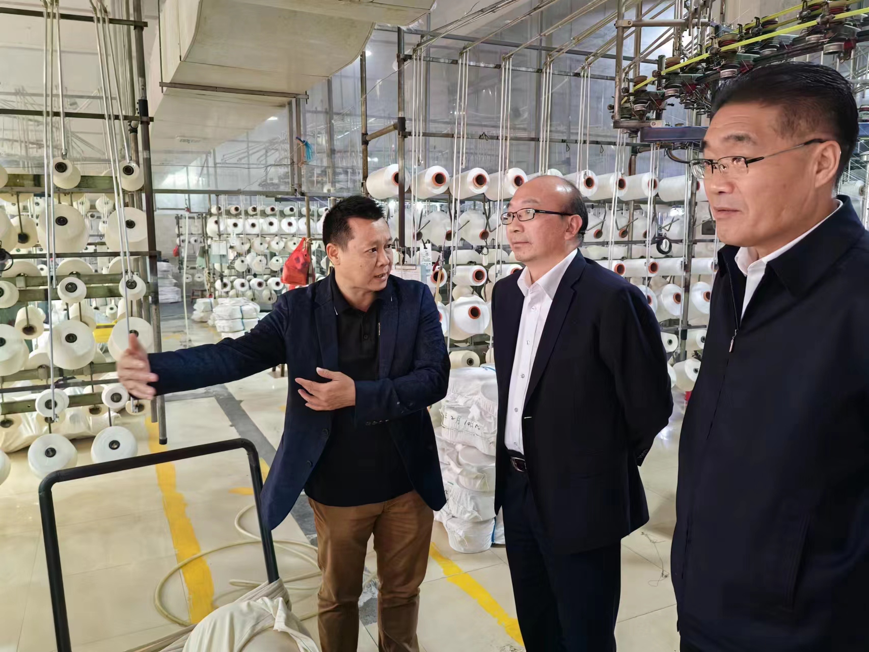 在匯年豐紡織公司,丁銳一行在陸汝針總經(jīng)理的陪同下參觀了該公司紡織生產(chǎn)線,并就產(chǎn)品定位、成本、質(zhì)量及交期等有關(guān)情況進(jìn)行了座談交流。雙方表示,工投集團(tuán)與匯年豐紡織建立了良好的業(yè)務(wù)合作關(guān)系,希望下一步能夠繼續(xù)加深合作,擴(kuò)大業(yè)務(wù)量。