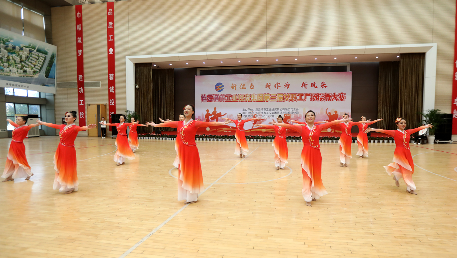 “新?lián)?dāng)、新作為、新風(fēng)采”,增進(jìn)職工友誼,凝聚團(tuán)隊(duì)力量。10月29日,由集團(tuán)工會(huì)主辦,徐圩投資公司承辦的集團(tuán)公司第三屆女職工廣場(chǎng)操舞大賽在徐圩新區(qū)體育館激情開賽,來(lái)自各單位的11支代表隊(duì)近150名女職工共同獻(xiàn)上一場(chǎng)精彩的文化盛宴。市婦聯(lián)副主席臧永明,集團(tuán)公司黨委副書記戴鴻鳴、紀(jì)委書記汪群、工會(huì)主席劉承志等領(lǐng)導(dǎo)參加活動(dòng)。