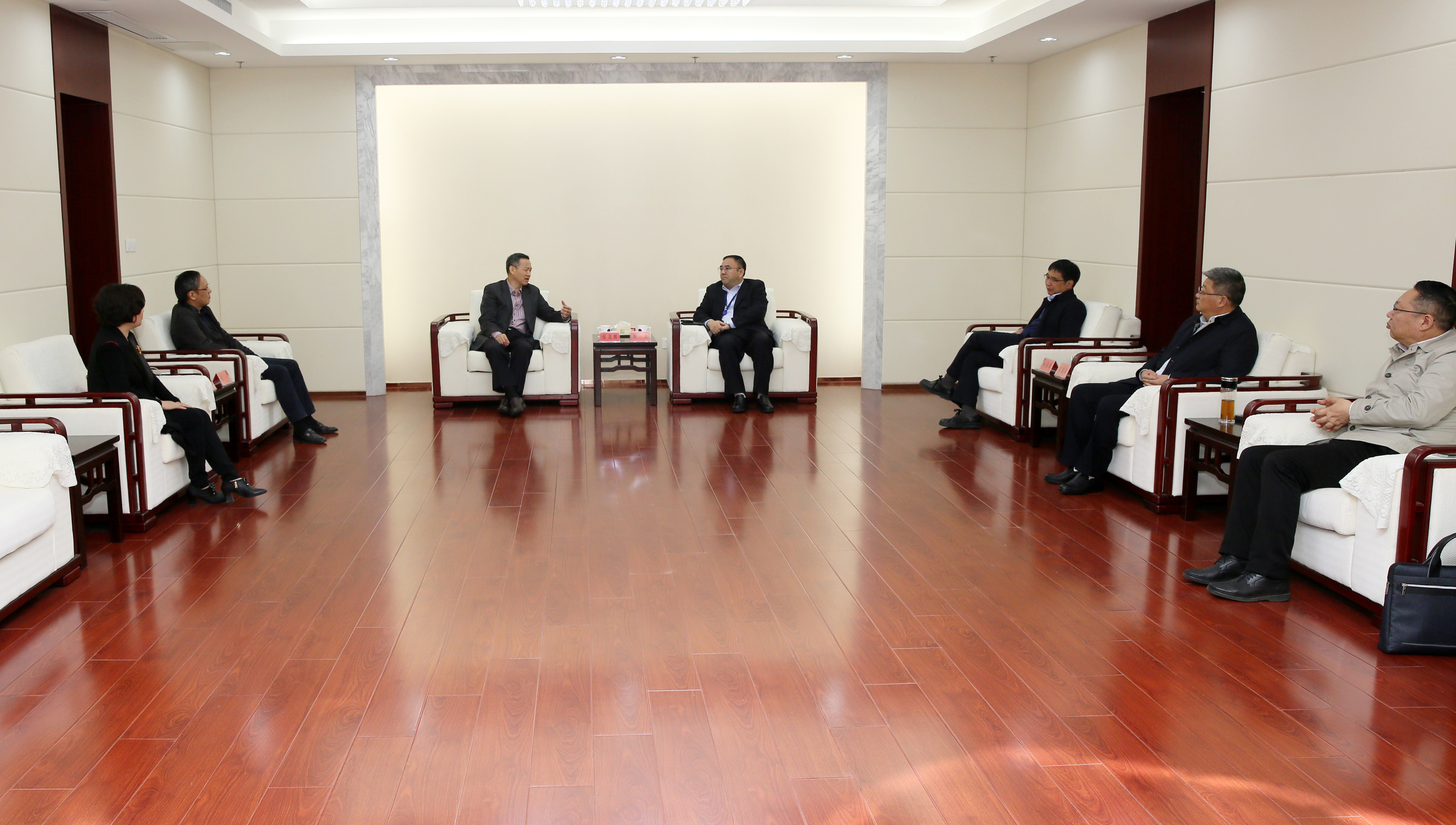 11月4日,集團(tuán)公司黨委書(shū)記、董事長(zhǎng)楊龍會(huì)見(jiàn)廣東省鹽業(yè)集團(tuán)有限公司副總經(jīng)理伍茂輝、廣鹽集團(tuán)深圳公司董事長(zhǎng)梁丹、廣鹽集團(tuán)股份公司營(yíng)銷中心副總經(jīng)理葉陸梅一行,就推動(dòng)雙方深化合作共贏進(jìn)行洽談交流。集團(tuán)公司常務(wù)副總經(jīng)理?xiàng)顕?guó)新、總會(huì)計(jì)師匡友本,金橋制鹽公司董事長(zhǎng)朱桂玉等參加會(huì)談。