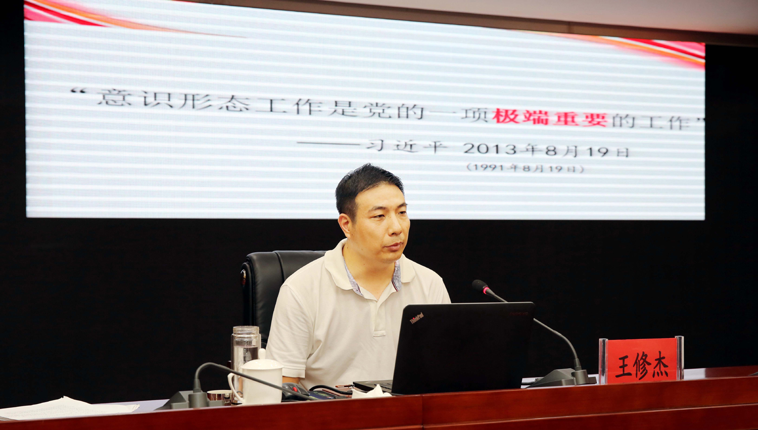 王修杰以“牢牢掌握意識形態(tài)工作的領導權(quán)”為題,結(jié)合國際國內(nèi)形勢和我市實際,圍繞充分認識意識形態(tài)工作的極端重要性、深刻把握當前意識形態(tài)領域復雜形勢、全面落實黨委意識形態(tài)工作責任制等方面內(nèi)容,深入淺出的剖析解讀了意識形態(tài)工作的基本內(nèi)涵、重大意義,報告主題鮮明、內(nèi)涵深刻、闡述透徹、聯(lián)系實際、條理清晰,既有理論思考、又有經(jīng)驗總結(jié),為與會人員深刻理解和把握新時代國企意識形態(tài)工作的新使命、新要求、新任務、新方法具有很強的現(xiàn)實指導意義。