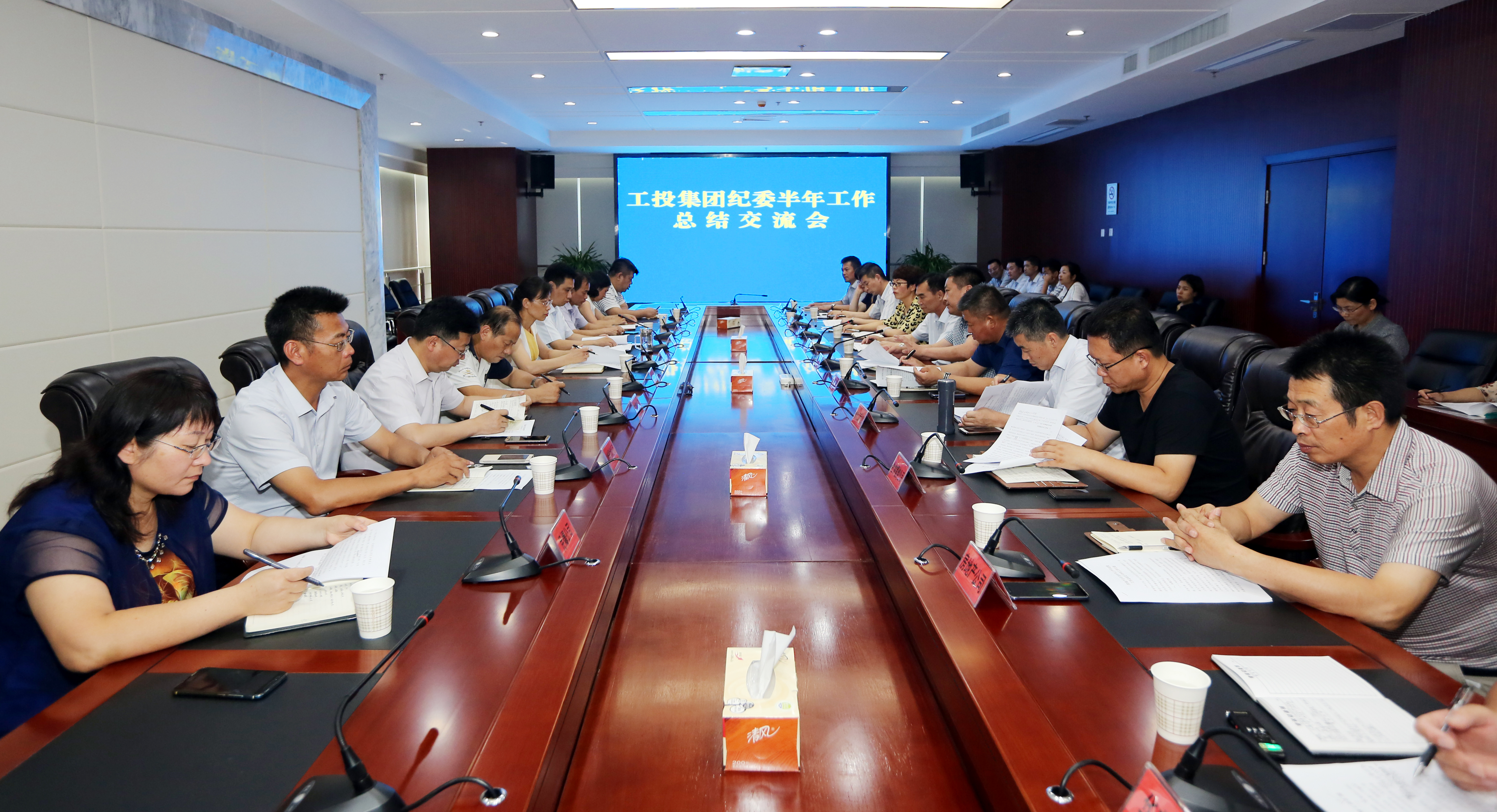 7月19日下午,集團(tuán)公司紀(jì)委召開(kāi)上半年工作總結(jié)交流會(huì)。集團(tuán)公司紀(jì)委書(shū)記汪群出席會(huì)議并講話。各權(quán)屬單位紀(jì)委書(shū)記(紀(jì)檢委員)、監(jiān)察室主任參加會(huì)議。會(huì)議聽(tīng)取了各單位上半年紀(jì)檢監(jiān)察工作開(kāi)展情況,分析了存在的問(wèn)題,研究部署了下一步工作措施。