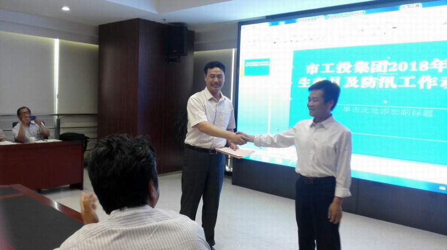 會(huì)上通報(bào)了2018年夏季氣候趨勢(shì)預(yù)測(cè)情況,同時(shí)傳達(dá)全國?;钒踩a(chǎn)視頻會(huì)議、“5.12”上海賽科燃爆事故概況。代表單位灌西、徐圩、利海公司三家會(huì)上遞交了防汛責(zé)任狀。