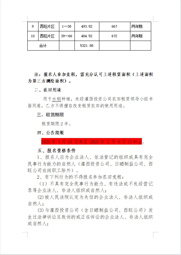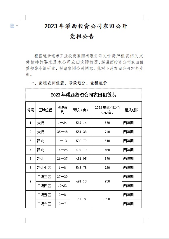 2023年灌西投資公司農(nóng)田公開競租公告