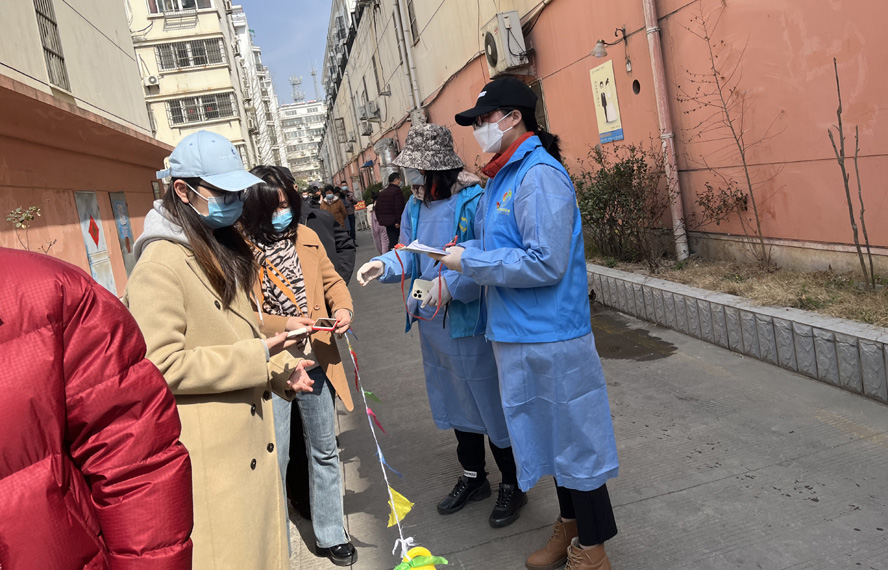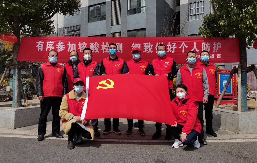 除了在崗員工,還有退休黨員秦英、孫芳等,在疫情發(fā)生前,他們是公司內(nèi)退黨員,在疫情爆發(fā)以后,他們是無(wú)所畏懼的抗疫戰(zhàn)士。隨著連云港開始第一輪全員核酸檢測(cè),工作人員和志愿者都嚴(yán)重短缺,每天確診病例激增的數(shù)據(jù)都令人觸目驚心。當(dāng)看到招募志愿者的公告時(shí),秦英熱血沸騰?!包h和人民需要我,我的家鄉(xiāng)需要我!”主動(dòng)聯(lián)系海州區(qū)幸福路街道西大嶺社區(qū),在咨詢志愿者報(bào)名的同時(shí),鄭重地并向社區(qū)遞交了一份疫情防控“請(qǐng)戰(zhàn)書”。