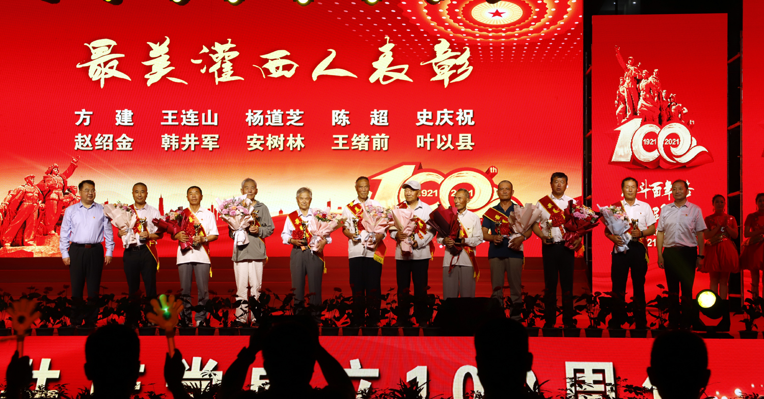 演出期間,對評選出的“最美灌西人”、10名優(yōu)秀員工和優(yōu)秀黨務工作者代表進行了表彰。
