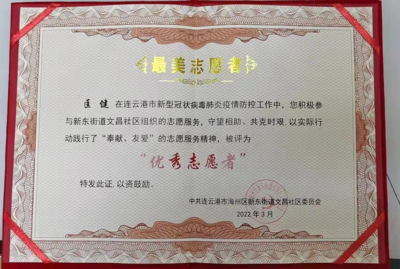 近日,公司黨員匡健、王長春分別被新東街道文昌社區(qū)、路南街道朝陽社區(qū)授予“最美志愿者”和“抗疫先鋒志愿者”。感謝他們在疫情防控期間舍小家顧大家,同舟共濟戰(zhàn)疫情、共克時艱同擔(dān)當(dāng),守護(hù)居民群眾的健康安全,為打贏疫情防控阻擊戰(zhàn)發(fā)揮了積極作用。