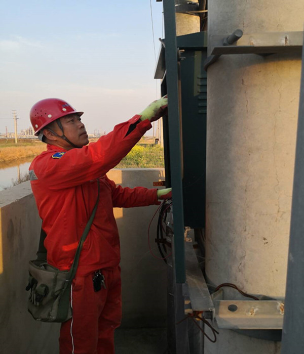 他,工作細致業(yè)務(wù)硬。多年來,他以所為家,幾乎沒有節(jié)假日和周末。不管是嚴寒酷暑,還是天氣惡劣,只要一有任務(wù),總是搶在前面,毫無怨言,風(fēng)雨無阻。一次,已經(jīng)在家休息的他接到所里搶修電話,立馬驅(qū)車前往現(xiàn)場。經(jīng)查看,勝利圩一個臺變的配電箱和變壓器起火,該臺變控制著附件1000畝魚塘和20戶居民的用電,如維修不及時,將造成魚塘缺氧,魚苗死亡,帶來巨大經(jīng)濟損失。為了將損失降到最低,他帶領(lǐng)班組成員,克服天氣熱,蚊蟲多等困難,一直奮戰(zhàn)到凌晨3點,終于更換完成損壞設(shè)備。