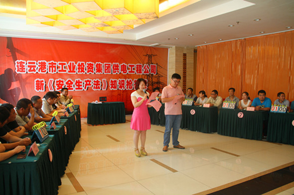 為了增強(qiáng)企業(yè)員工的安全意識(shí),強(qiáng)化安全生產(chǎn)依法治理。近日,公司在淮鹽大酒店舉行安全知識(shí)搶答賽。來自該公司機(jī)關(guān)及各單位的8支代表隊(duì)共24名選手參加了比賽。