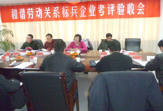 12月22日下午,在集團(tuán)公司工會(huì)副主席盧同根陪同下,市總工會(huì)副主席許東方率領(lǐng)市創(chuàng)建和諧勞動(dòng)關(guān)系標(biāo)兵企業(yè)考評(píng)組一行4人,對(duì)公司創(chuàng)建工作進(jìn)行考評(píng)驗(yàn)收。