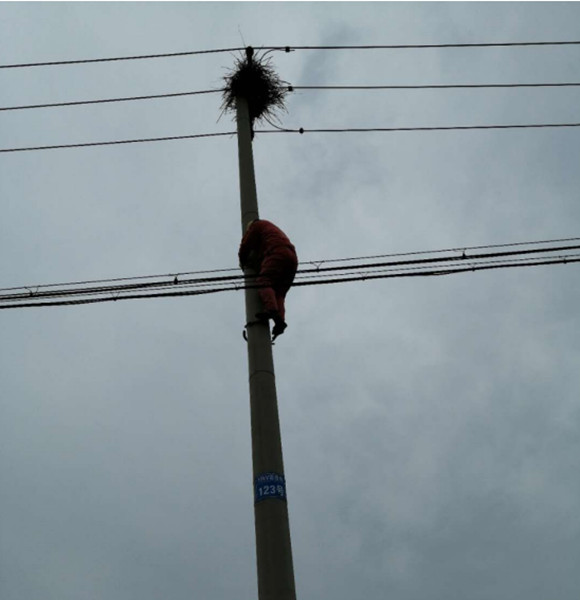 春季是鳥類筑巢高峰期,筑在電線上的鳥巢給線路運行帶來極大的風(fēng)險,為全力確保線路安全可靠。臺南供電所克服疫情期間人員少、搶修任務(wù)重的難題,迅速制定清巢工作預(yù)案,加大對轄區(qū)內(nèi)10KV線路巡線排查力度。