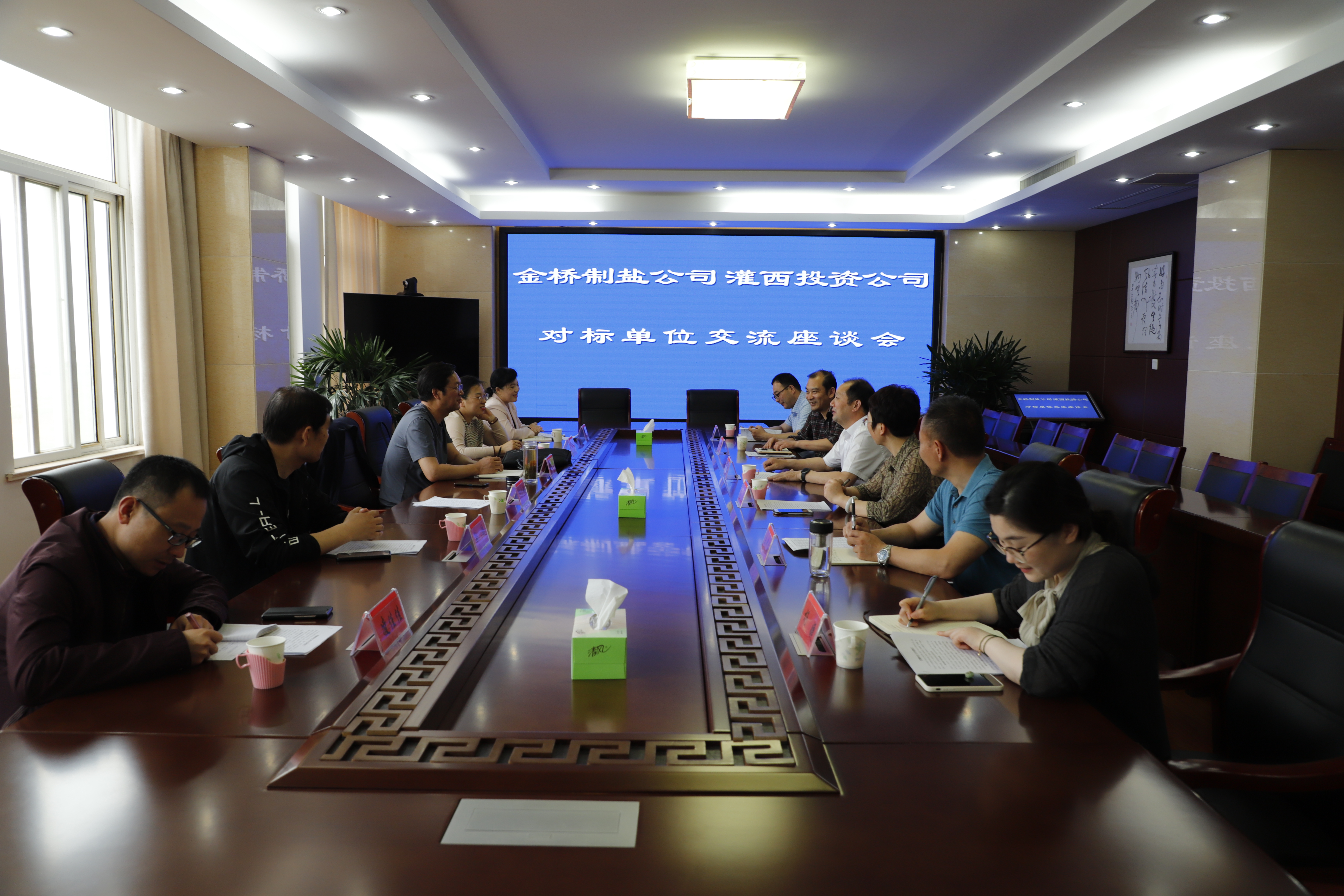 6月3日下午,江蘇金橋制鹽公司黨委副書記、工會主席曹開明率調(diào)研組一行,來灌西投資公司進(jìn)行對標(biāo)單位交流座談。灌西投資公司黨委書記、董事長、總經(jīng)理李國文,黨委副書記、工會主席王宏及黨群部門負(fù)責(zé)人陪同交流。
