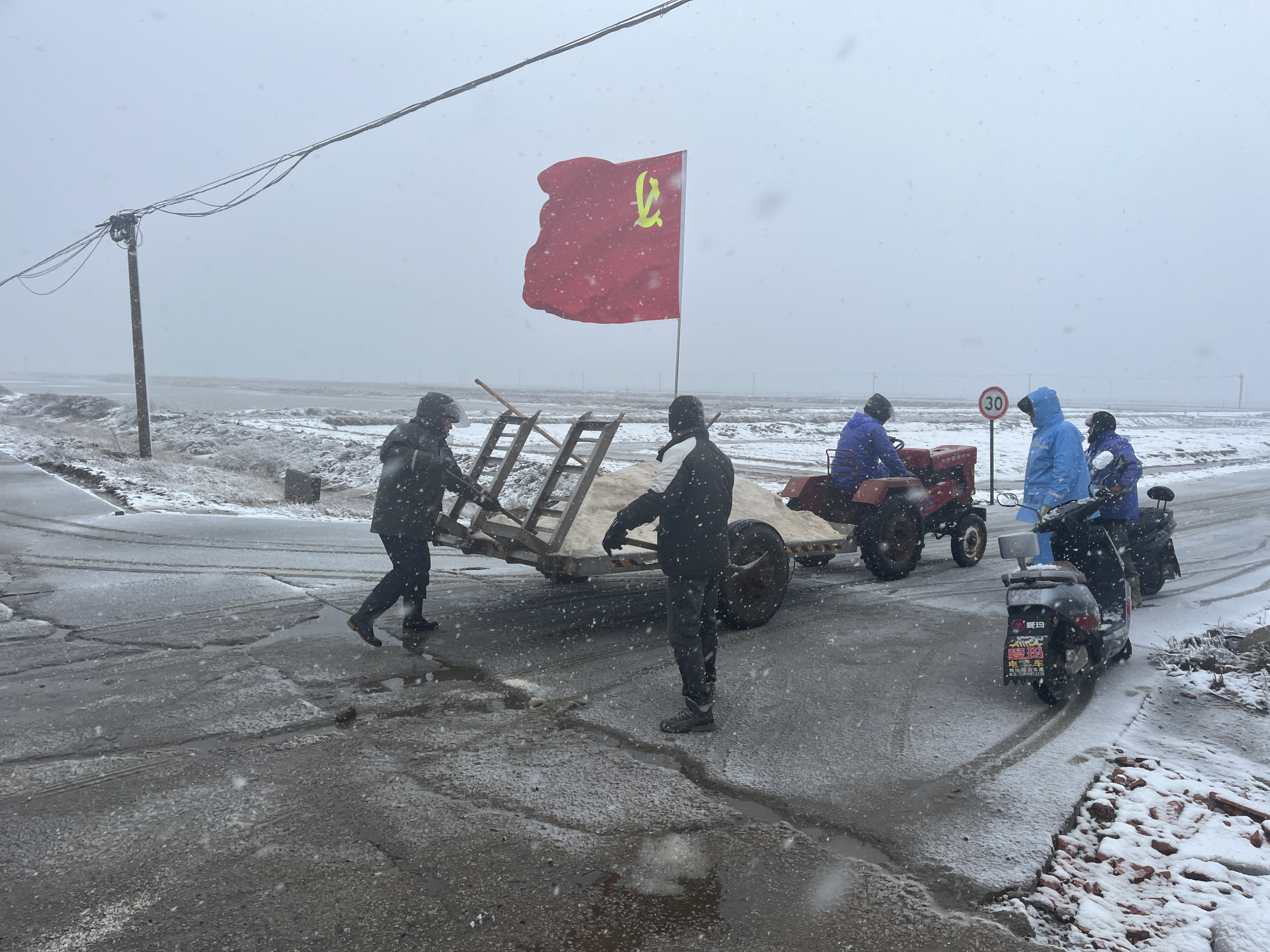 老黨員黃兆柱不惜班組產(chǎn)量,主動提供“融雪鹽”。祝星星、匡洪忠等不畏嚴寒、鉚足干勁,手拿鐵鍬撒鹽、鏟雪。同時,還積極組織大家清掃各自區(qū)域內(nèi)積雪,共同守護職工出行安全。經(jīng)過大家的努力,南北長約5公里的道路已全部撒上“融雪鹽”。下一步,新河支部黨員先鋒隊將密切關(guān)注天氣變化,全力保證職工上下班道路交通安全。