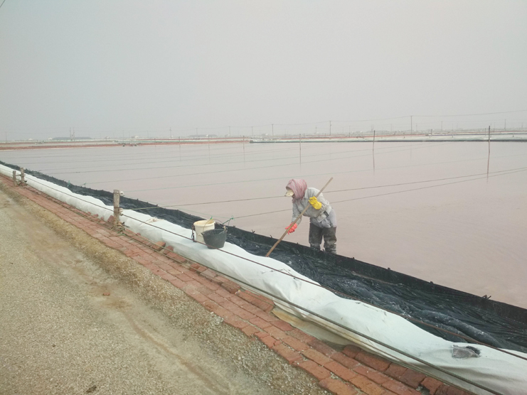 每一個(gè)女孩都喜歡美麗的衣服,都喜歡把自己裝扮得漂亮迷人??墒枪ぷ鞯奶厥庑圆辉试S鹽灘工“貌美如花”。周娟,37歲,新河制鹽分公司5班一名普通的女工,她關(guān)注班組集體事務(wù),能夠團(tuán)結(jié)、關(guān)心班組女工,并積極帶領(lǐng)女職工昂揚(yáng)向上,奮發(fā)有為,為單位鹽業(yè)生產(chǎn)多作貢獻(xiàn)。周娟特別注重對(duì)新上崗的員工培訓(xùn)教育工作,她總是不厭其煩講解原鹽操作流程及工作中的注意事項(xiàng)和安全隱患,毫不保留將自己多年的經(jīng)驗(yàn)傳授給大家。炎熱的夏天,當(dāng)大家坐在辦公室,吹著空調(diào)、喝著冰水時(shí),她和她的同事依舊在鹽灘忙碌著,嬌嫩的皮膚被曬得黝黑。盡管如此,她依然每天駕駛著活茬機(jī),一遍又一遍地游走在鹽田,將汗水撒在工投。