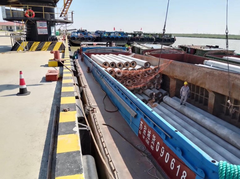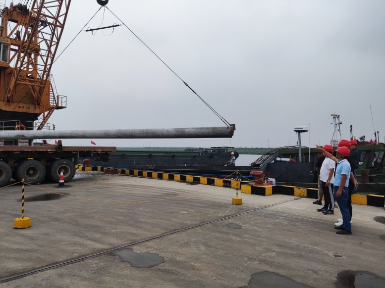 管樁的裝卸和別的貨物相比,安全風(fēng)險更大,所以在裝卸管樁時,宵洋管理人員要深入現(xiàn)場,緊盯嚴(yán)管,對管樁的重要環(huán)節(jié),一邊講解注意事項(xiàng),一邊手勢指揮,塔吊師傅小心翼翼,嫻熟地拔弄著操作手把,通過塔吊搬運(yùn),五噸的管樁在半空中調(diào)試到最佳位置,最后平穩(wěn)著落,從船艙吊起的管樁,運(yùn)送到貨車上,艙內(nèi)的三名工人,齊心協(xié)力,配合得相當(dāng)默契,掛在吊機(jī)上的管樁,看似簡單的一鉤一掛,不僅要調(diào)整管樁擺放角度,還要檢查鋼繩是否牢固,為了安全起見,在船艙和管樁之間,又架起了一層防護(hù)網(wǎng),防止掛鉤工摔倒跌落,采取一系列防范措施,確保萬無一失。經(jīng)過一天的忙碌,望著遠(yuǎn)去車輛,每當(dāng)圓滿完成當(dāng)天卸管樁任務(wù)后,工人們憨厚老實(shí)臉上,露出了滿意的微笑,這就是我們宵洋工人搬卸管樁情景的真實(shí)寫照!(宵洋物流公司胡秀同)