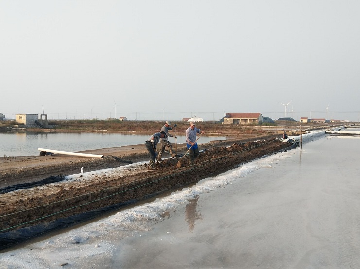針對扒鹽期間被“小紅車”壓塌的池堰,趁整理鹽池將鹵水放干期間,加派人員進(jìn)行整理、修繕,確保來年的原鹽生產(chǎn)。各個(gè)班組根據(jù)實(shí)際情況,有的修復(fù)結(jié)晶池池埝,有的進(jìn)行天溝清理疏浚,有的整理灘場文明。提前開工,為“冬準(zhǔn)”做好準(zhǔn)備。(王然)
