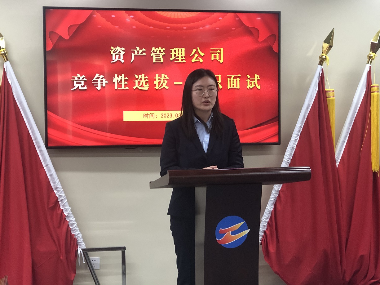 資產(chǎn)管理公司制定了《“競爭性選拔”實施方案》。前期通過自愿報名、宣傳動員、資格審查等環(huán)節(jié),共有7名候選人進入述職面試環(huán)節(jié)。面試采取“演講+答辯”的方式進行,既考核競聘者的語言表達、臨場應(yīng)變和邏輯思維等能力,又檢驗競聘者的業(yè)務(wù)水平和崗位匹配性。競聘現(xiàn)場,應(yīng)聘人員通過抽簽輪流進行面試,展示各自風(fēng)采,氣氛緊張而又激烈。評委組根據(jù)競聘者臺上的演講內(nèi)容及答辯情況現(xiàn)場打分。
