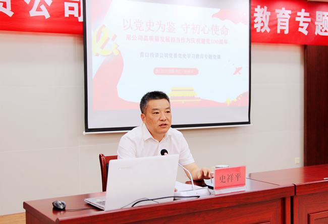 黨的百年華誕來(lái)臨之際,6月30日上午,青口公司黨委書(shū)記史祥平以《以黨史為鑒 守初心使命 用公司高質(zhì)量發(fā)展擔(dān)當(dāng)作為慶祝建黨100周年》為題,為公司黨員干部上了一堂生動(dòng)的黨史學(xué)習(xí)教育專(zhuān)題黨課。集團(tuán)公司黨委黨史學(xué)習(xí)教育第一指導(dǎo)組組長(zhǎng)、集團(tuán)紀(jì)委副書(shū)記王建松應(yīng)邀參加會(huì)議。