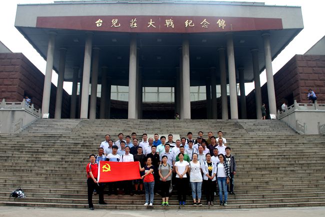 在臺(tái)兒莊大戰(zhàn)紀(jì)念館中,黨員們聽取講解員介紹了臺(tái)兒莊大捷的整個(gè)過程。觀看了展覽館、書畫館、全景畫館,一件件戰(zhàn)時(shí)實(shí)物、一張張黑白照片、一個(gè)人個(gè)感人肺腑的故事,再現(xiàn)了當(dāng)年全國(guó)軍民同仇敵愾、共御外侮的歷史和不屈不撓、誓死抗擊日寇的民族精神,這次戰(zhàn)役是抗日戰(zhàn)爭(zhēng)以來取得的最大勝利,打擊了日本侵略者的囂張氣焰,堅(jiān)定了全國(guó)軍民堅(jiān)持抗戰(zhàn)的信心。黨員們受到了深刻的教育,民族自豪感油然而生,來到紀(jì)念館前莊嚴(yán)肅立,面朝鮮紅黨旗,重溫了入黨誓詞。