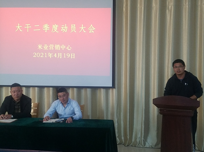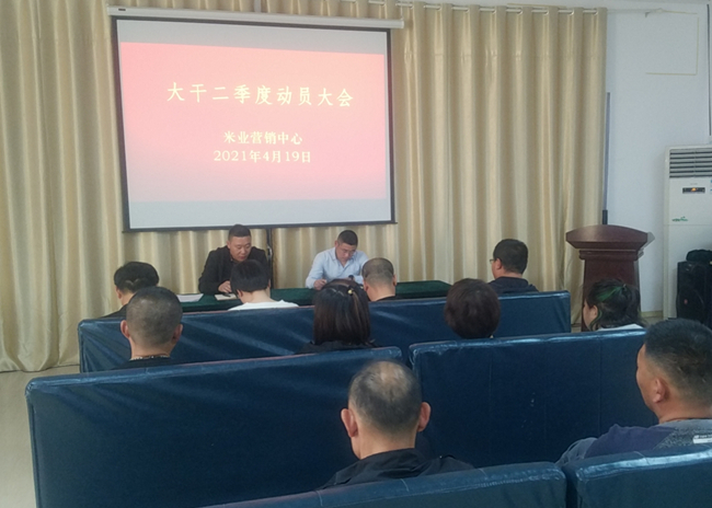 ? ? ? ?4月19日,米業(yè)營(yíng)銷(xiāo)中心召開(kāi)大干二季度動(dòng)員大會(huì),進(jìn)一步貫徹落實(shí)投資公司二屆一次職代會(huì)暨第二次工代會(huì)會(huì)議精神,結(jié)合“崗位建新功、創(chuàng)效爭(zhēng)一流”大干二季度勞動(dòng)競(jìng)賽,規(guī)劃部署米業(yè)全年工作,分解全年銷(xiāo)售任務(wù),以分解量化的季度指標(biāo),以月保季、以季保年,緊扣工作目標(biāo),明確責(zé)任分工,凝心聚力,共謀發(fā)展。