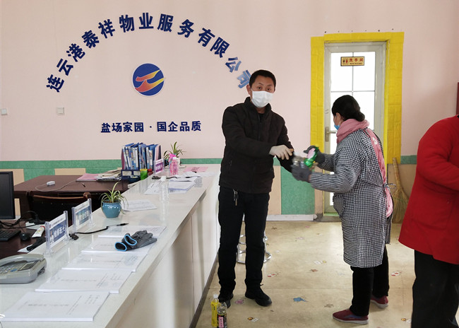 自新型冠狀病毒感染的肺炎疫情發(fā)生以來(lái),泰祥公司所有的保潔、保安堅(jiān)守崗位,兢兢業(yè)業(yè),奮戰(zhàn)在疫情防控工作的第一線(xiàn)。為了確保他們的身體健康并感謝他們家人的理解,在消毒液緊缺的情況下,公司率先錯(cuò)時(shí)為他們發(fā)放酒精和84消毒水,并及時(shí)告知使用酒精和84消毒水的注意事項(xiàng)。(趙萌萌)