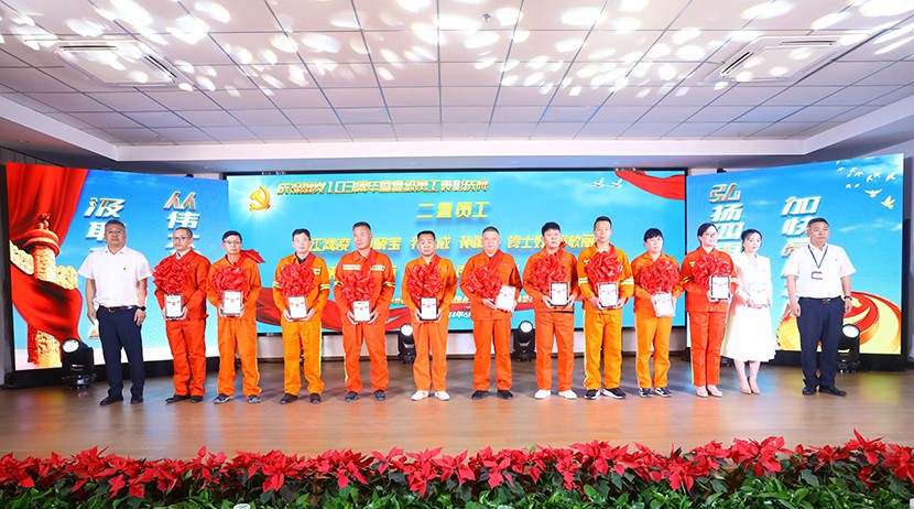 為鼓勵(lì)先進(jìn)、創(chuàng)樹典型,進(jìn)一步激發(fā)全公司廣大員工干事創(chuàng)業(yè)活力,不斷推動(dòng)“ 敢為、敢闖、敢干、敢首創(chuàng)”在全公司上下蔚然成風(fēng),助力公司高質(zhì)量跨越式發(fā)展。6月21日下午,臺(tái)北(華茂)公司“展風(fēng)采·黨旗頌·強(qiáng)發(fā)展”星級(jí)員工頒獎(jiǎng)文藝演出在環(huán)保裝備產(chǎn)業(yè)園圓滿落幕。公司領(lǐng)導(dǎo)班子,各單位、部門干部職工觀看演出,特邀請(qǐng)集團(tuán)黨建人資、工會(huì)等同志到場(chǎng)觀摩指導(dǎo)。