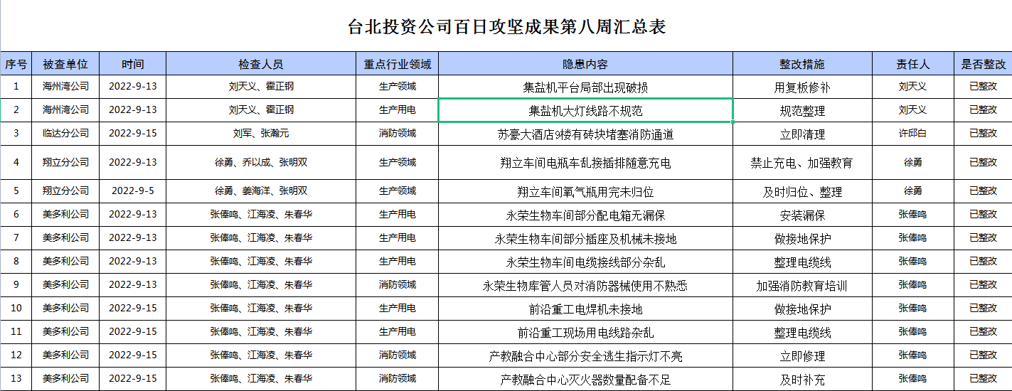 臺(tái)北投資公司百日攻堅(jiān)成果第八周匯總表