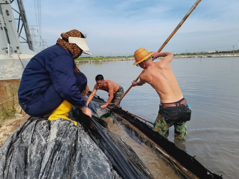 回程途中,我們又經(jīng)過(guò)鈣液生產(chǎn)灘地,廣大職工在鈣液銷售旺季,趕進(jìn)度、搶工期。在海濱泵站,徐松保師傅正在室外查看鈣液計(jì)量表,為鈣液車開(kāi)具單據(jù)。據(jù)了解,他一天在室外要為20余輛鈣液車開(kāi)單子,中午吃頓飯出出進(jìn)進(jìn)幾次才能吃完,衣服濕了干,干了濕,十分辛苦!在先鋒泵站,程輝師傅撩起工作服擦了擦臉上的汗水,繼續(xù)將潛水泵安置到已廢棄的灘地里,把灘地里的雨水抽干,將廢棄的灘地利用起來(lái)晾曬低濃度的鈣液,解決銷售旺季成品鈣液供不應(yīng)求難題。用廣大職工的話:天氣再熱,困難再多,也擋不住我們沖刺生產(chǎn)18萬(wàn)方鈣液的腳步。