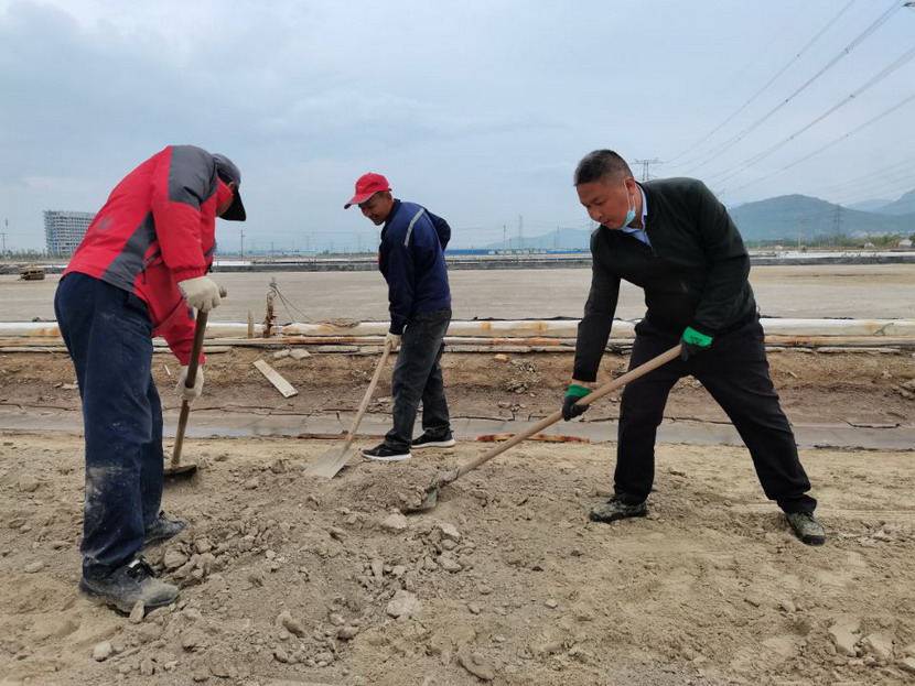 5月8日至10日,公司全體管理人員下至昌圩班組作業(yè)現(xiàn)場(chǎng),與一線(xiàn)工人共同“作戰(zhàn)”——清理鹽池里沉淀的硫酸鈣固化物。硫酸鈣固化物俗稱(chēng)鹽繭,形成的主要原因是鹵水中的硫酸鈣溶解度低,在特定的環(huán)境下大量形成,沉淀在鹽池板表層,若不清理,將嚴(yán)重影響鹽質(zhì)顏色。在清理過(guò)程中,黨員干部帶頭干、往前沖,一锨一锨地將鹽繭鏟起,堆積并裝車(chē)卸貨。公司秉承降本增效工作理念,將清理出的鹽繭廢物鋪墊在鹽灘壟道上,提高了路面硬度方便職工日常作業(yè)。