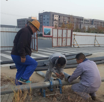 鏡頭二:負責匯晶路新建橋梁鈣液管道遷建工程的供鹵組聯(lián)合復曬灘人員早早投入到施工操作中,該項工程是為了配合開發(fā)區(qū)匯晶路與躍湖路新建連通橋梁的需要,需要遷改鈣液管道160米,工程造價6萬元。