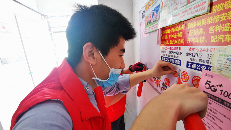 水淋、撕鏟、涂抹,志愿者們“奇招百出”對小區(qū)墻面、電線桿等處張貼、噴涂的小廣告進行全面清理。35度的高溫下,汗流浹背的大伙收獲的不僅是小區(qū)“臉面”煥然一新后勞動的喜悅,還有結(jié)識志同道合的新朋友通力協(xié)作的“戰(zhàn)友情”。