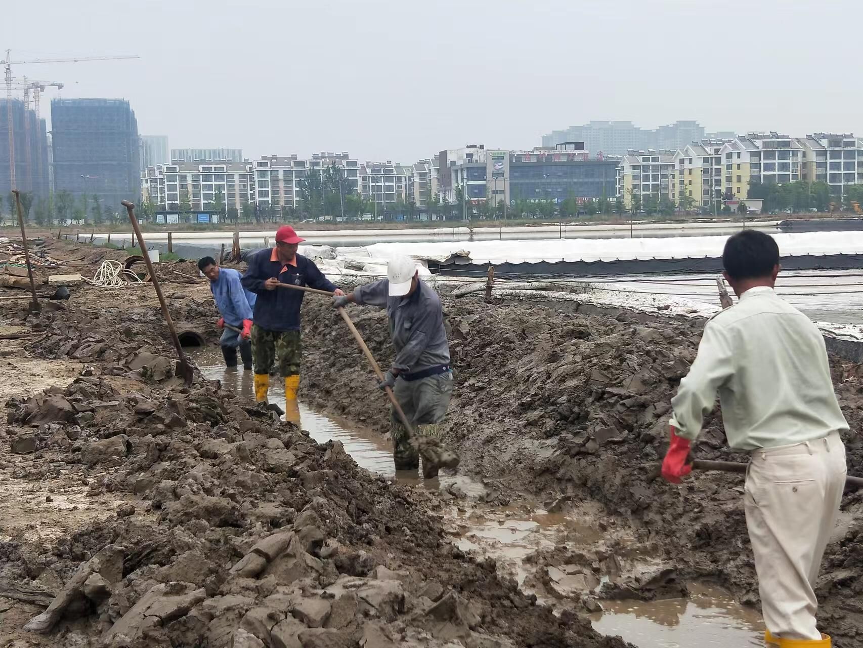 根據(jù)部署安排,公司建立防汛隊伍,備足鐵锨、編織袋、塑料繩、水泵等防汛物資和機械。汛期來臨前組織各班組自查安全生產(chǎn)情況,做好應急演練,進一步完善防汛抗災工程,疏通排淡溝道,加強塑池管理、防風工作,加高口門備熟泥,塑池小包圍工程,雨季遇不穩(wěn)定天時,提前苫蓋一部分塑池,凡是中雨以上降水,及時按排人員對結(jié)晶池進行檢查,及時排淡,做到雨前、雨中、雨后勤檢查,確保確保鈣液、礦鹽勞動成果安度雨季。