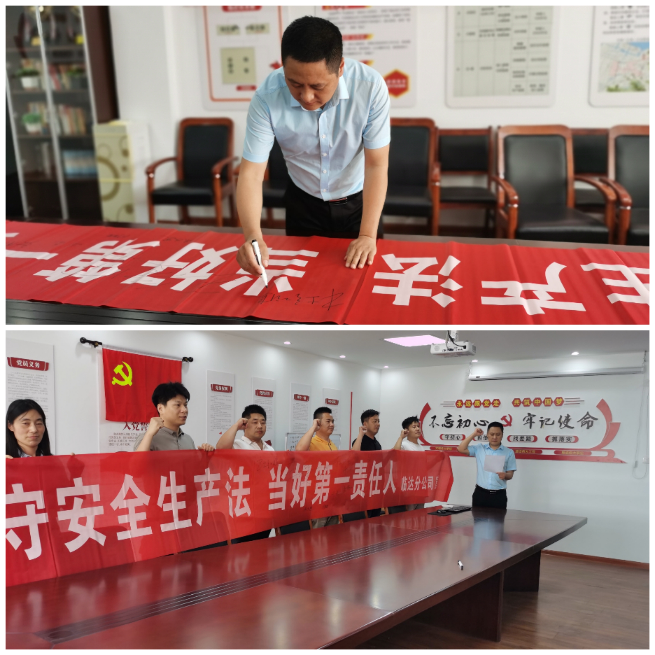 6月7日上午11時(shí),在公司會(huì)議室,臨達(dá)分公司員工一起舉起右手,一字一句的宣誓,字字鏗鏘有力,擲地有聲。用錚錚誓言銘記安全責(zé)任,牢筑安全生產(chǎn)防線,為全力抓好公司的安全工作保駕護(hù)航,向黨的二十大獻(xiàn)禮。
