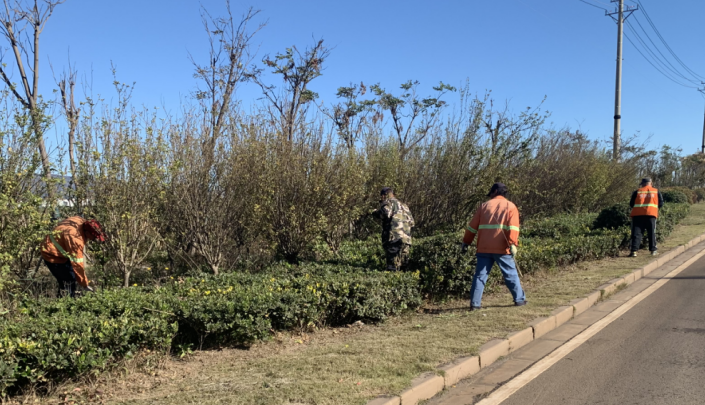 綠化班組每日出動40余人次,采取人機結(jié)合方式,對綠化帶內(nèi)雜草進行全面清理,對綠植、灌木、草坪進行全面修剪工作,提升園林綠化精心化管護水平。結(jié)合當前實際,科學(xué)施肥合理安排澆水時間、澆水量,有效防止因干旱造成綠化植物死株死苗現(xiàn)象出現(xiàn)。為強化科學(xué)養(yǎng)護,提升景觀。搶抓好天氣,對管轄園區(qū)綠植物開展修剪行動,除枯死枝、折斷枝、病蟲枝、下垂枝,死樹、死苗、雜物進行清理,促進植物正常生長,有效提升綠化景觀效果。